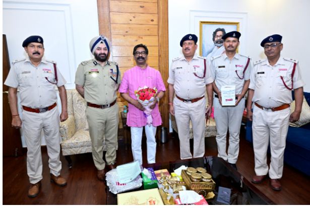 रांची: मुख्यमंत्री हेमन्त सोरेन से आज कांके रोड स्थित मुख्यमंत्री आवासीय कार्यालय में पुलिस महानिदेशक गृह रक्षा वाहिनी एवं अग्निशमन सेवा श्री एम. एस. भाटिया ने शिष्टाचार भेंट की. 'अग्निशमन सेवा सप्ताह'के अवसर पर सीएम को बैज लगाया. इस अवसर पर मुख्यमंत्री ने अग्निशमन सेवा सप्ताह की शुभकामनाएं दीं. मुख्यमंत्री ने अग्निशमन विभाग के कार्यों की सराहना की.
