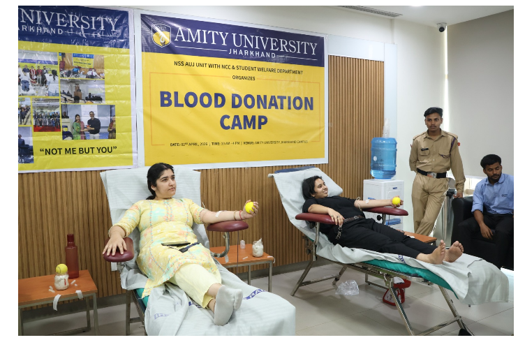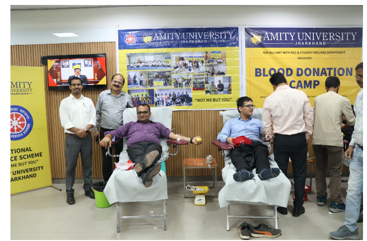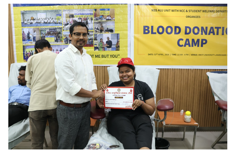 रक्तदाताओं को जलपान,प्रमाणपत्र तथा मानवता की इस सेवा के लिए स्मृति-चिह्न देकर सम्मानित किया गया. इस अवसर पर डॉ. अभिषेक त्रिपाठी (डीन,मैनेजमेंट एंड एलाइड प्रोग्राम्स),डॉ. प्रभात कुमार त्रिपाठी (एसोसिएट डीन, SWD),एमिटी यूनिवर्सिटी झारखंड सहित अन्य शिक्षकगण एवं छात्र-छात्राएं उपस्थित रहे और उन्होंने रक्तदान कर कार्यक्रम की शोभा बढ़ाई.