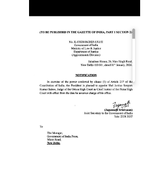 BIG NEWS : जस्टिस संगम कुमार साहू पटना हाईकोर्ट के नये चीफ जस्टिस नियुक्त, केंद्र सरकार ने जारी की अधिसूचना