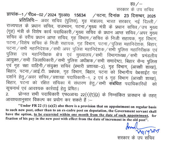 यह पदोन्नति गृह विभाग द्वारा विधिवत अधिसूचना जारी कर दी गई है.