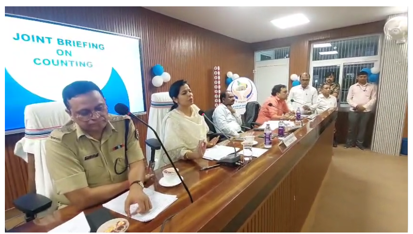 डीएम ने कहा कोई भी मतगणना कर्मी मोबाइल लेकर मतगणना हॉल में प्रवेश नहीं करेंगे. जांच में पकड़े जाने पर कार्रवाई होगी. मतगणना हॉल में प्रवेश से पहले सभी महिला-पुरुष मतगणनाकर्मी की जांच होगी. तभी अंदर प्रवेश करने दिया जएगा. सभी मतगणना कर्मी समय से पहुँच जाएं , समय पर नहीं पहुचने पर कार्रवाई होगी. डीएम ने कहा जिस तरह से चुनाव आयोग के गाइड लाइन के तहत आप लोगों ने चुनाव कार्य सम्पन्न कराया उसी तरह मतगणना कार्य को सम्पन्न करेंगे. इस मौके पर एसपी, एसडीओ,डीएसपी, समेत बीडीओ एवं सीओ मौजूद रहे.