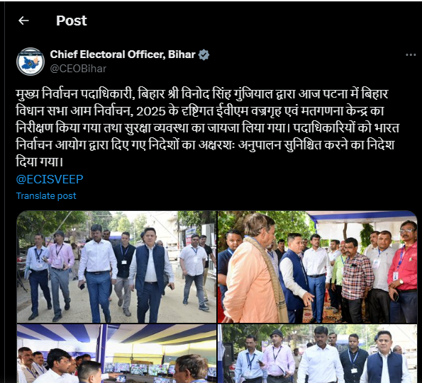 BIHAR ELECTION 2025 : बिहार के CEO विनोद सिंह गुंजियाल ने पटना में EVM वज्रगृह एवं मतगणना केंद्र का किया निरीक्षण