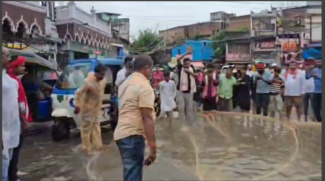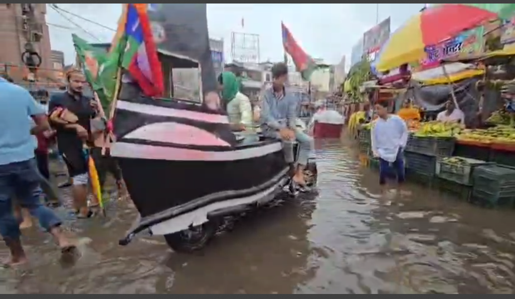 दरअसल पिछले 24 घंटे से हो रही लगातार बारिश ने दरभंगा शहर की स्थिति खराब कर दी है. कई मुख्य इलाकों में जलजमाव इतना बढ़ गया कि लोगों का पैदल चलना मुश्किल हो गया है. इसी गंभीर स्थिति को दिखाने के लिए महागठबंधन के वीआईपी प्रत्याशी उमेश सहनी आज यानि शुक्रवार को नाव पर सवार होकर जनसंपर्क करते दिखे. उमेश सहनी ने अपने चुनाव चिह्न ‘नाव’ पर सवार होकर दरभंगा टावर चौक तक पहुंचे.
