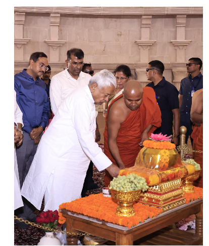 मुख्यमंत्री ने स्मृति स्तूप के भू-तल पर अधिष्ठापित भगवान बुद्ध की पूजा-अर्चना कर राज्य में सुख,शांति एवं समृद्धि की कामना की.