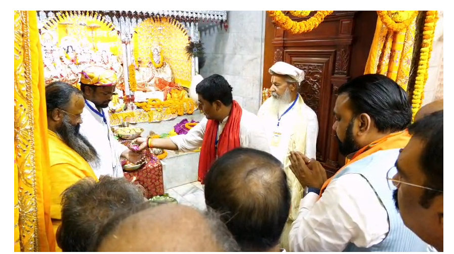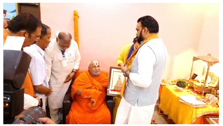 मुख्यमंत्री ने शिला पूजन समारोह में शामिल होने से पूर्व महान संत श्री राम भद्राचार्य जी महाराज से मुलाकात कर उनका आशीर्वाद प्राप्त किया.