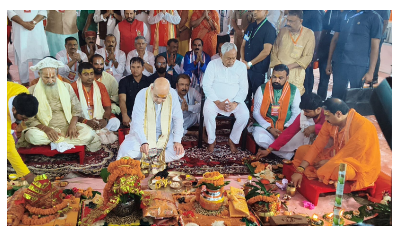 सीतामढ़ी : गृह मंत्री अमित शाह और बिहार के मुख्यमंत्री नीतीश कुमार सीतामढ़ी के पुनौरा धाम पहुंच कर हजारों करोड़ की लागत से पुनौरा धाम में बनने वाले मां सीता के भव्य मंदिर का शिलान्यास एवं भूमि पूजन भी किया.
