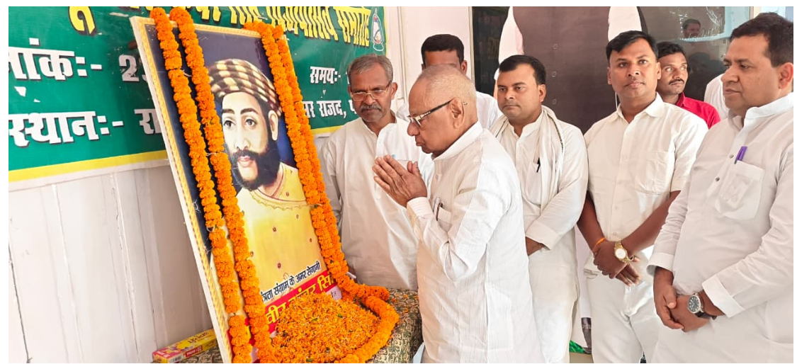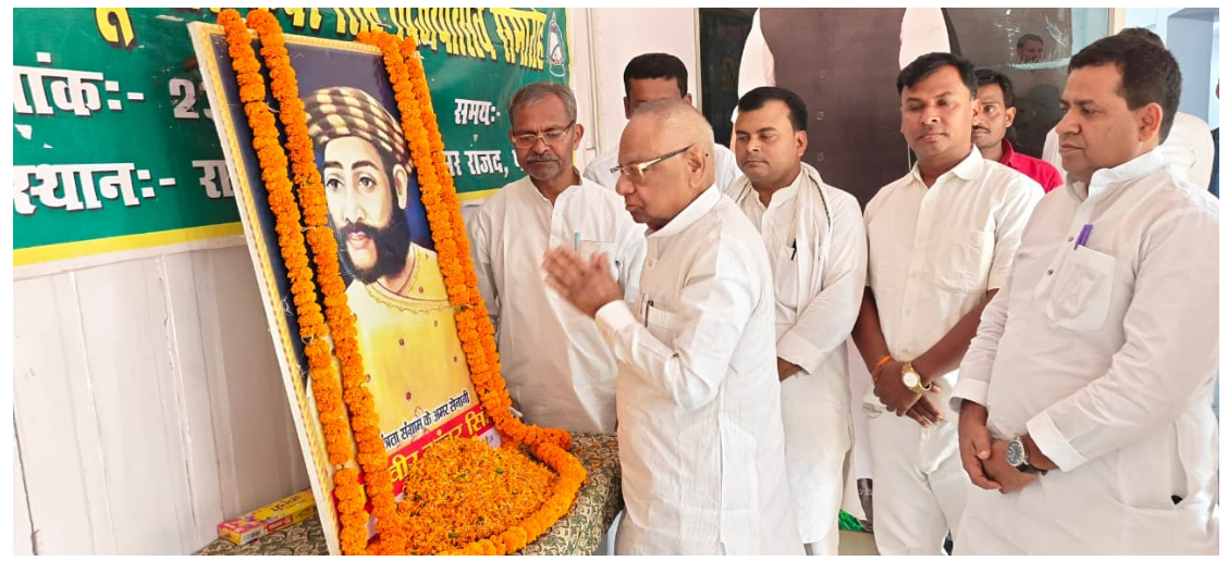 सहित दर्जनों नेताओं एवं कार्यकर्ताओं ने बाबू वीर कुँवर सिंह जी के तैलचित्र पर माल्यार्पण कर श्रद्धांजलि अर्पित की.