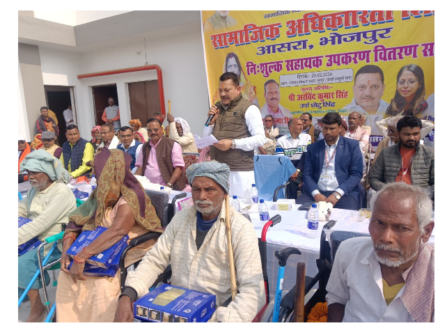 BIHAR NEWS : आरा के नरगदा में दिव्यांग लाभार्थियों के बीच सहायक उपकरण वितरित