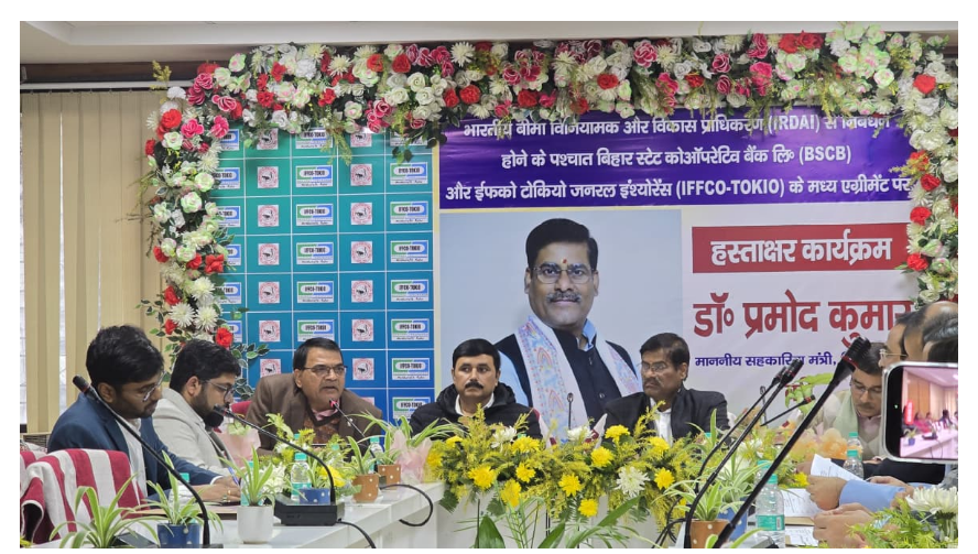 बिहार राज्य सहकारी बैंक लिमिटेड तथा इफको टोकियो जनरल इंश्योरेंस कंपनी लिमिटेड के बीच हुए इस एकरारनामा पर हस्ताक्षर बैंक की ओर से इसके उप महाप्रबंधक श्रीन्द्र नारायण ने किया. वहीं इफको टोकियो की ओर से कंपनी के वाईस प्रेसिडेंट विपुल गुप्ता ने हस्ताक्षर किया.