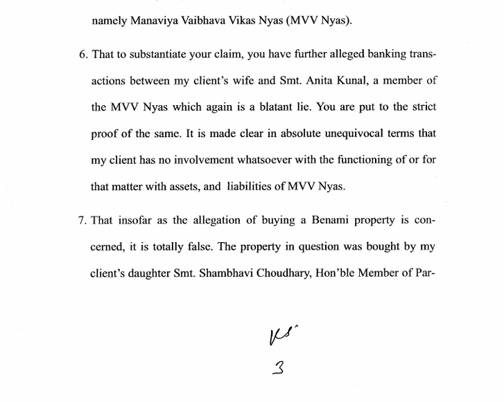 उक्त संपत्ति दिनांक 21.02.2021 को उनकी पुत्री एवं समस्तीपुर से सांसद शाम्भवी चौधरी द्वारा अपनी वैधानिक आय एवं संसाधनों से खरीदी गई थी. इस संपत्ति का स्पष्ट उल्लेख उनके चुनावी शपथ-पत्र में भी अंकित है. अतः इस मामले में किसी प्रकार की बेनामी का प्रश्न ही उत्पन्न नहीं होता.
