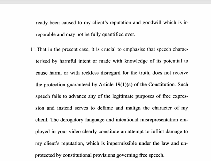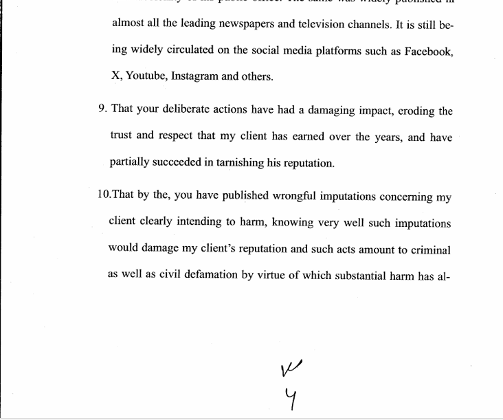 उन्होंने स्पष्ट चेतावनी दी कि परिस्थितियों और दस्तावेज़ों से समर्थित तथ्यों के आलोक में उन्हें पहले ही ₹100 करोड़ का मानहानि नोटिस भेजा जा चुका है. इस नोटिस के तहत प्रशांत किशोर को सात दिन के भीतर लिखित एवं मौखिक रूप से प्रेस कॉन्फ्रेंस कर बिना शर्त माफी माँगनी होगी. यदि वे ऐसा करने में विफल रहते हैं तो उनके विरुद्ध उपयुक्त आपराधिक कार्यवाही और ₹100 करोड़ रुपये की क्षतिपूर्ति हेतु दीवानी वाद दायरकियाजाएगा.