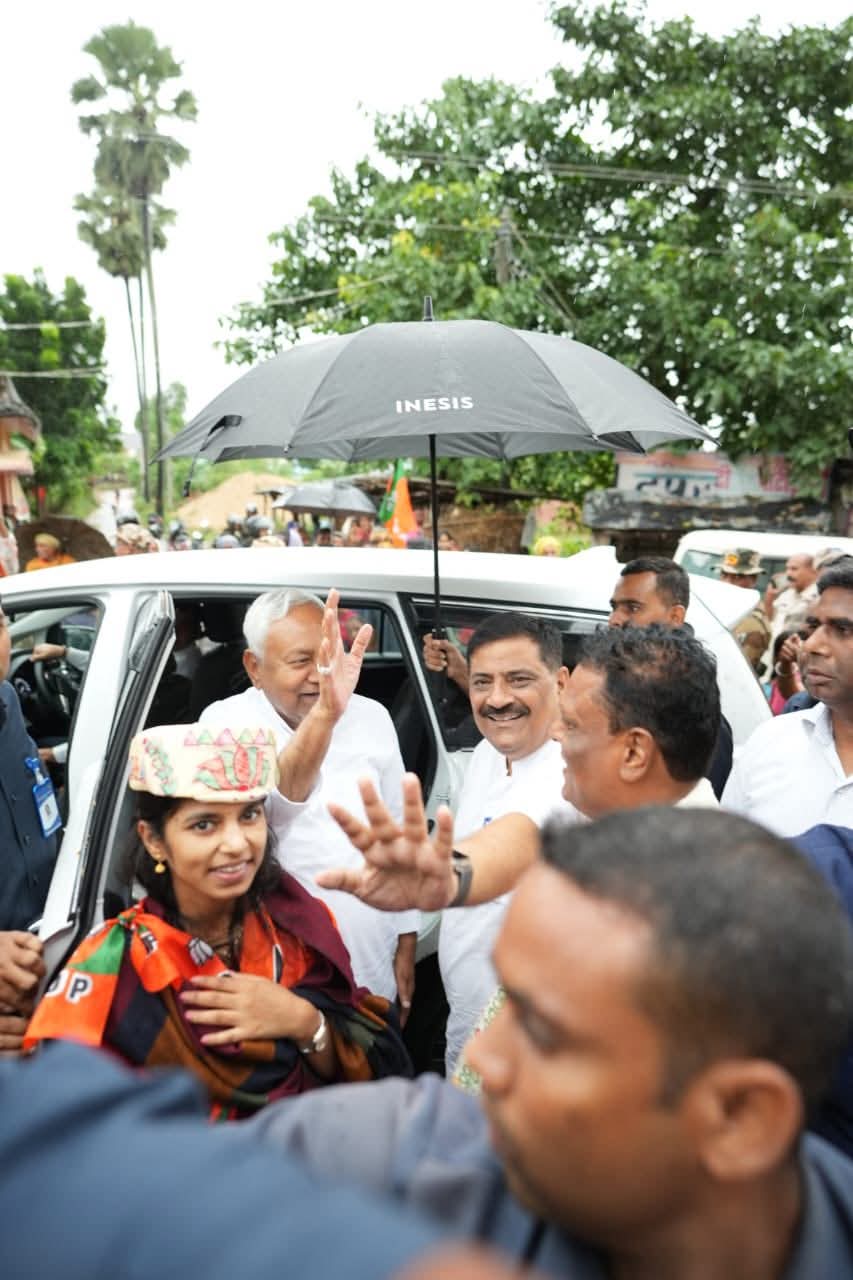 बताते चले कि मुख्यमंत्री की कुशेश्वरस्थान में सभा आयोजित की जानी थी, लेकिन बारिश और हेलीकॉप्टर उड़ान रद्द होने के कारण सभा स्थगित कर दी गई। इसके बाद मुख्यमंत्री ने सड़क मार्ग से समस्तीपुर होते हुए कुशेश्वरस्थान पहुंचकर रोड शो किया। नीतीश कुमार के सड़क मार्ग से आने की सूचना मिलते ही अलीनगर विधानसभा से भाजपा उम्मीदवार मैथिली ठाकुर भी उनसे मुलाकात करने पहुंची। तथा मिथिला के परंपरा के अनुसार उनका स्वागत किया।