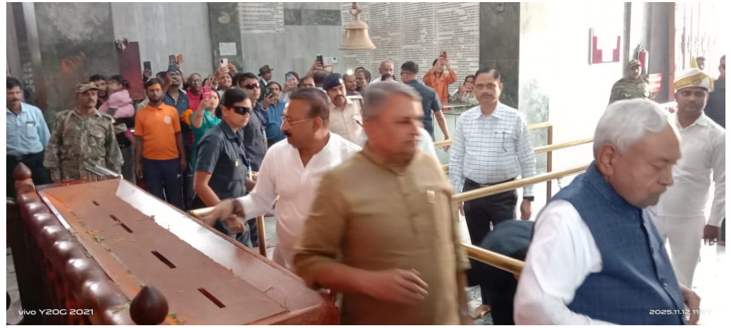 इस अवसर पर मुख्यमंत्री के साथ शिक्षा मंत्री विजय कुमार चौधरी,भवन निर्माण मंत्री अशोक चौधरी सहित कई वरिष्ठ नेता और अधिकारी भी उपस्थित रहे. मंदिर परिसर में श्रद्धांजलि कार्यक्रम के दौरान सुरक्षा व्यवस्था के कड़े प्रबंध किए गए थे.