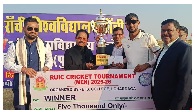 लोहरदगा: जिले के बीएस कॉलेज स्थित क्रिकेट मैदान में आयोजित इंटर कॉलेज क्रिकेट टूर्नामेंट का समापन समारोह शुक्रवार को उत्साहपूर्वक संपन्न हुआ. इस अवसर पर मुख्य अतिथि पूर्व राज्यसभा सांसद धीरज प्रसाद साहू शामिल हुए. उन्होंने खिलाड़ियों का उत्साह बढ़ाते हुए खेल के महत्व पर विस्तृत रूप से बात रखी.
