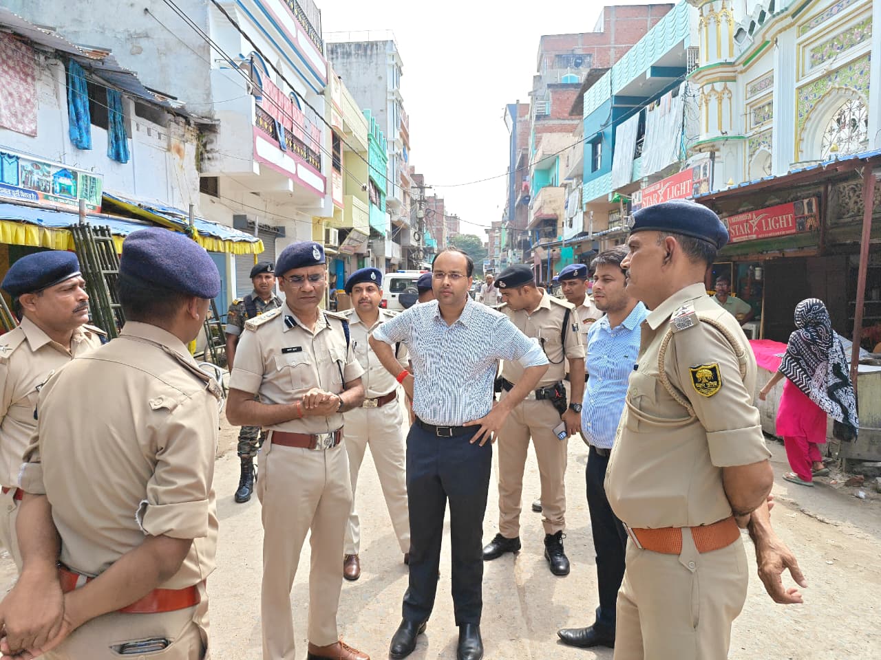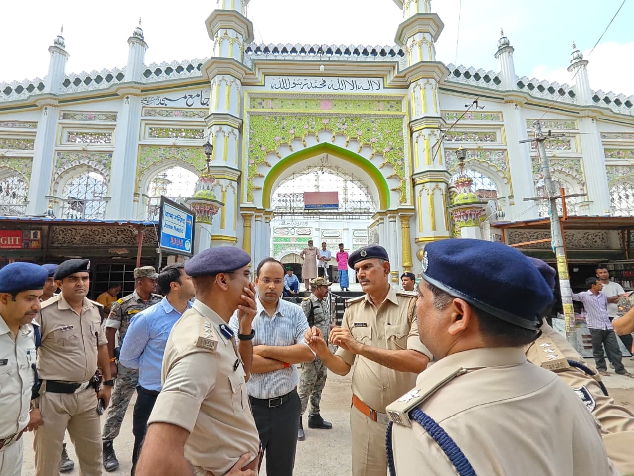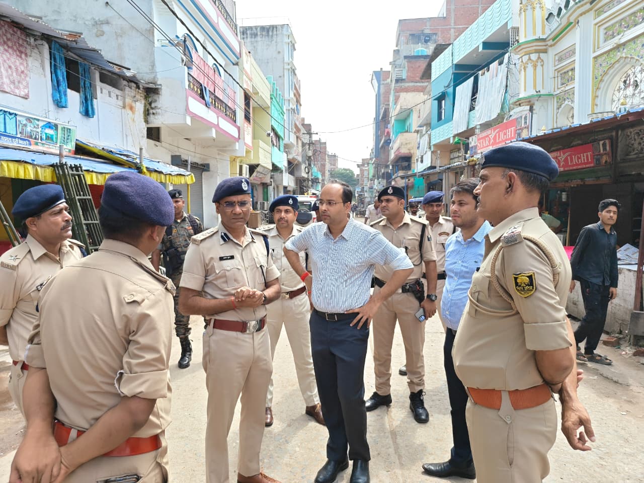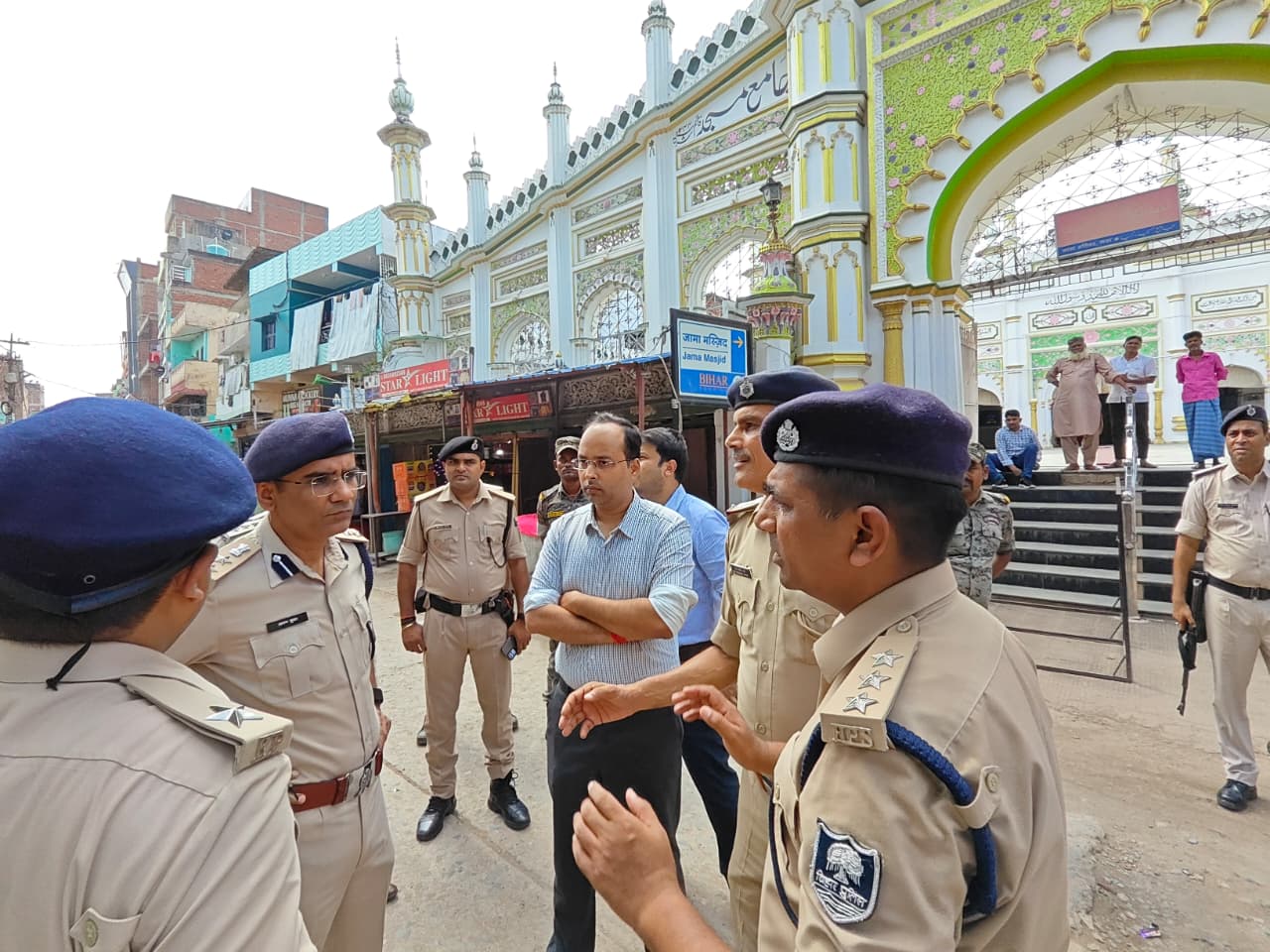 इसके पश्चात डीएम एसएसपी द्वारा जामा मस्जिद के समीप स्थापित होने वाले 5 प्रतिमाओं का विसर्जन मार्ग का निरीक्षण किया। बताया गया कि विजय दशमी के रात में ही इन 5 प्रतिमाओं का विसर्जन किया जाता है। गांधी मैदान में रावण दहन कार्यक्रम के पश्चात जिला स्तरीय वरीय पदाधिकारी यहां आते हैं, उनकी उपस्थिति में प्रतिमाओं को विसर्जित किया जाता है। इसके लिए विसर्जन रुट चिन्हित है। उक्त रास्ता में मजबूती से बैरिकेडिंग, बिजली/ रौशनी की वैकल्पिक व्यवस्था, पेयजल, स्वास्थ्य आदि की पूरी व्यवस्था मुकम्मल करवाने का निर्देश दिए हैं। वरीय पुलिस अधीक्षक ने पर्याप्त ड्रोन से निगरानी रखने, पर्याप्त सीसीटीवी कैमरे लगवाने एवं वीडियोग्राफी की व्यवस्था करवाने को कहा है।