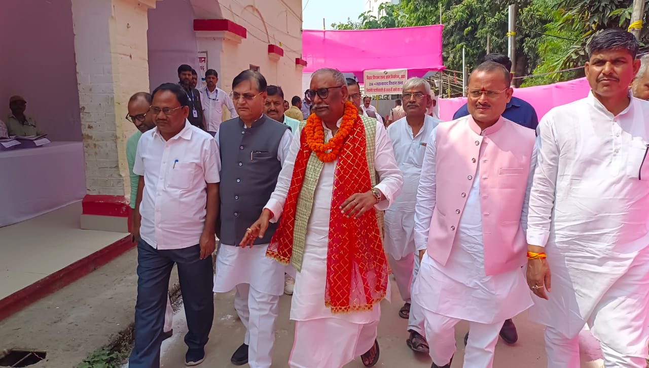 BIHAR NEWS : पूर्व सांसद अरुण कुमार के बेटे ऋतुराज ने किया नामांकन,फूल मालाओं से जोरदार स्वागत