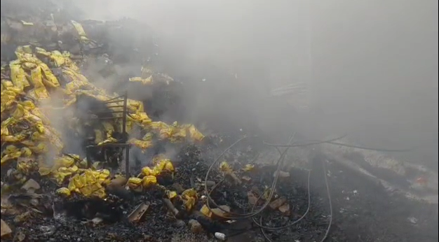 किराना गोदाम में लगी भीषण आग : 50 लाख का सामान जलकर खाक