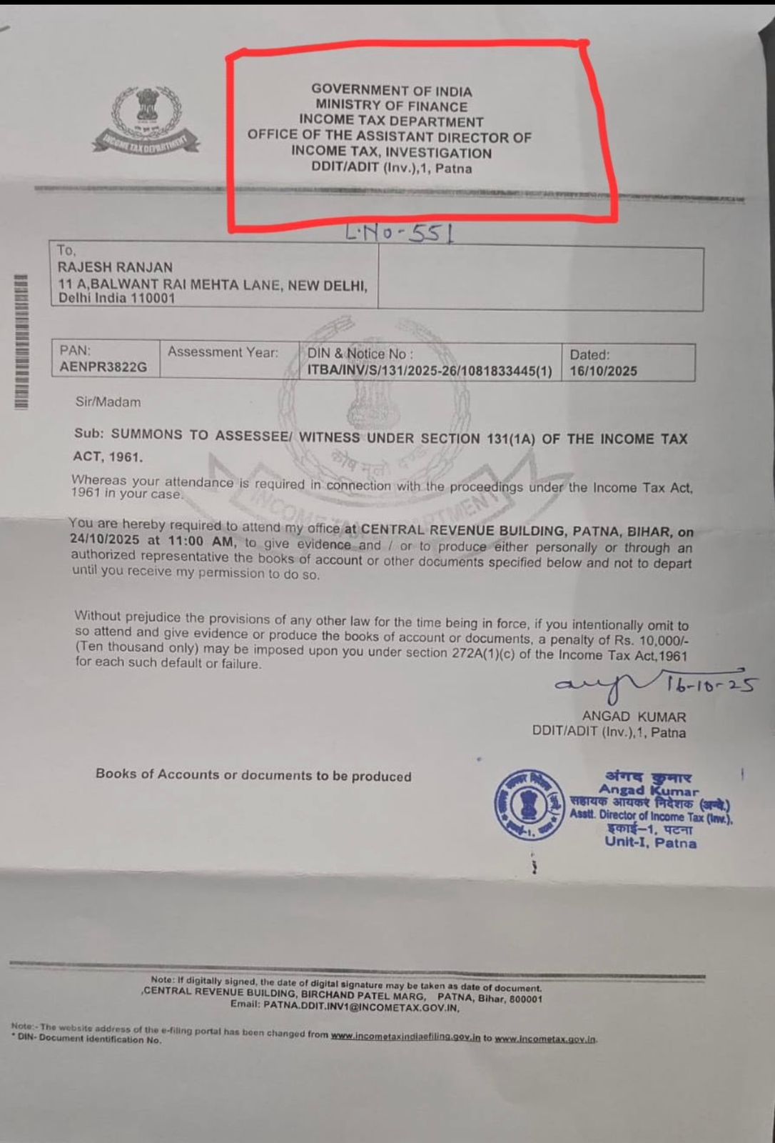Bihar News : सांसद पप्पू यादव को इनकम टेैक्स का नोटिश, पूछा- 'पैसा कहां से लाए?