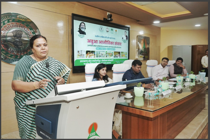 रांची: झारखंडस्टेट लाईवलीहुड प्रोमोशन सोसाईटी (जेएसएलपीएस) एवं नाबार्ड के संयुक्त प्रयास से रांची स्थित स्टेट इंस्टीट्यूट ऑफ रूरल डेवलपमेंट (SIRD) में ‘अबुआ आजीविका संवाद कार्यक्रम’ का सफल आयोजन किया गया. कार्यक्रम की अध्यक्षता ग्रामीण विकास मंत्री दीपिका पाण्डेयसिंह ने की. इस अवसर पर के. श्रीनिवासन, सचिव – ग्रामीण विकास विभाग, अनन्य मित्तल, सीईओ – जेएसएलपीएस, एवं दीपमाला घोष, सीजीएम – नाबार्ड उपस्थित रहीं.