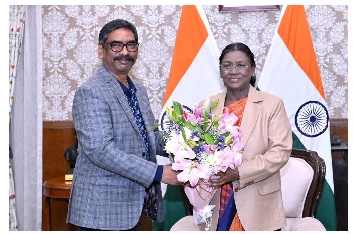JHARKHAND NEWS : राष्ट्रपति द्रौपदी मुर्मू से लोकभवन में सीएम हेमन्त सोरेन और कल्पना सोरेन ने की मुलाकात