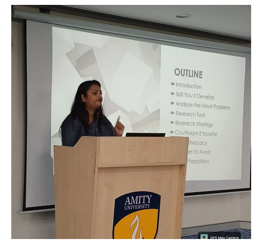 कार्यशाला का संचालन एडवोकेट श्रुति भारती,एसोसिएट (कॉर्पोरेट एवं कमर्शियल लॉ),विधि एसोसिएट्स द्वारा किया गया. उन्होंने छात्रों को मूट कोर्ट अभ्यास की बारीकियों से अवगत कराया तथा इसे विधि शिक्षा का एक अभिन्न और महत्वपूर्ण अंग बताया.