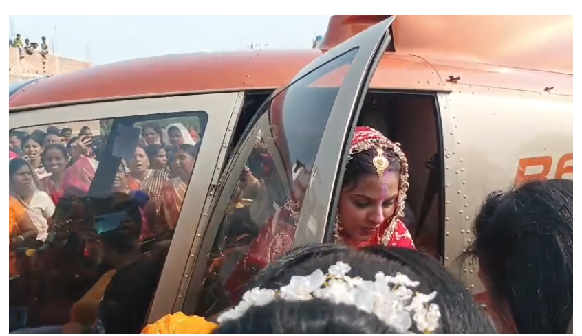 पटना में अनोखी शादी : पिता का सपना पूरा करने हेतु हेलीकॉप्टर से ससुराल पहुंची दुल्हन, गांव वालों की लगी भीड़