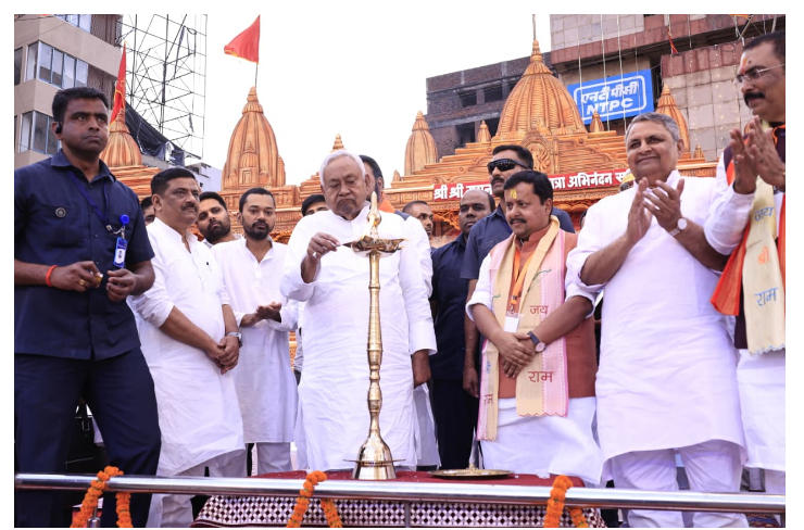 रामनवमी शोभायात्रा में पहुंचे सीएम नीतीश : पटना के डाकबंगला चौराहा पर आयोजित कार्यक्रम का दीप प्रज्वलित कर किया शुभारंभ