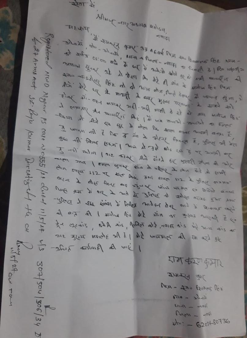 पीड़ित रामकरण ने थाने में दिए गए आवेदन में लिखा है कि मनोज सिंह एक कुख्यात अपराधी है। ट्रेन लूटकांड, डकैती कांड, सिविल कोर्ट नवादा कांड जैसे अन्य कांड का मुख्य आरोपित बताया है। वहीं, इस घटना से पीड़ित परिवार दहशत में है। पीड़ित परिवार पुलिस प्रशासन से जानमाल की सुरक्षा के साथ-साथ न्याय की गुहार लगा रहे हैं।
