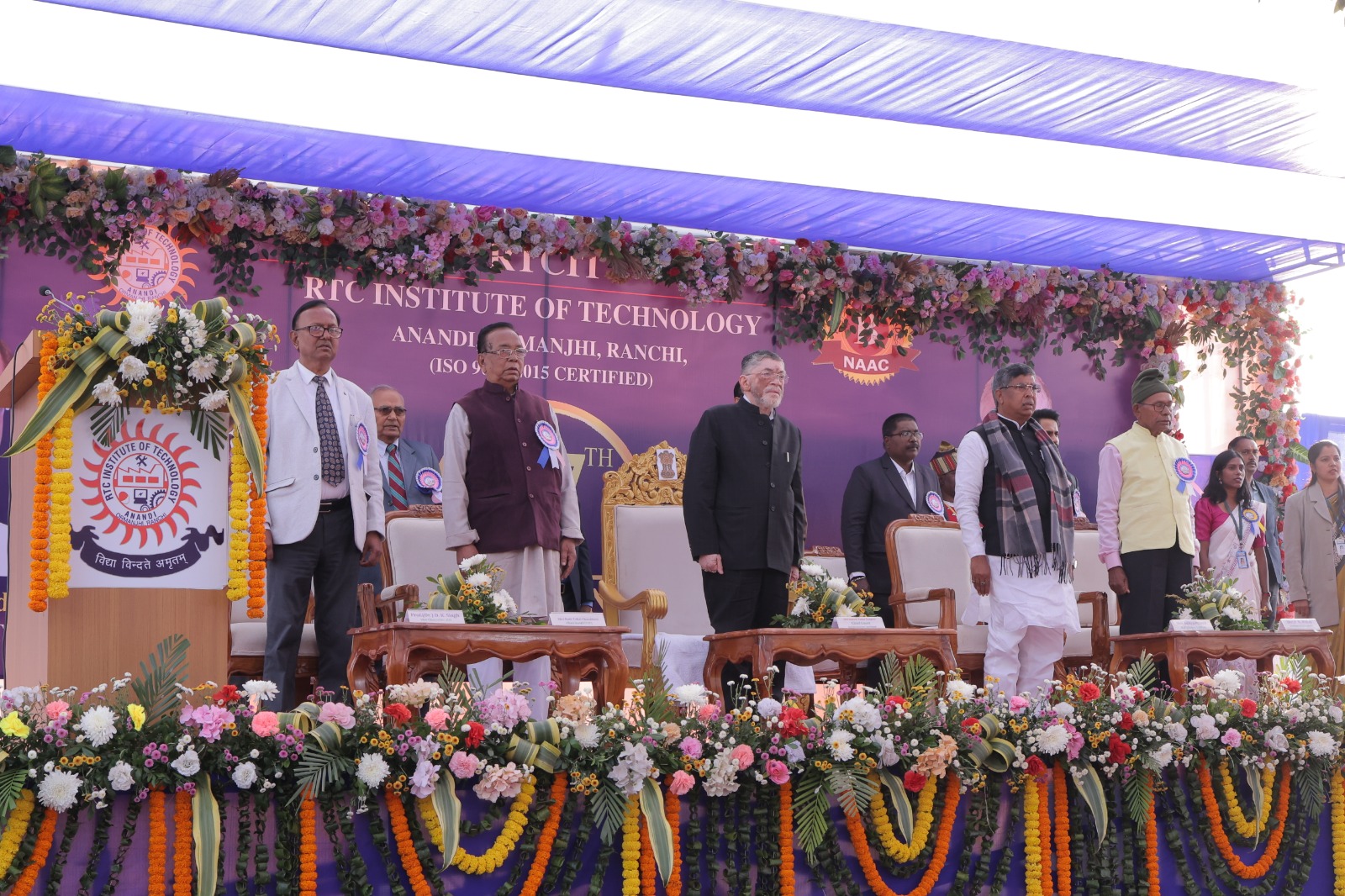 कार्यक्रम का समापन राष्ट्रीय गान के साथ हुआ, जिसने पूरे आयोजन को एकता, अनुशासन और सम्मान की भावना के साथ ऐतिहासिक रूप से पूर्ण किया। फाउंडेशन डे2025 का यह सफल आयोजन आरटीसी इंस्टिट्यूट ऑफ टेक्नोलॉजी की शैक्षणिक उत्कृष्टता, नेतृत्व क्षमता और नवाचार–उन्मुख दृष्टि का प्रबल प्रमाण बनकर सामने आया। संस्थान आने वाले वर्षों में भी तकनीकी शिक्षा, कौशल विकास,अनुसंधान और राज्य के समग्र विकास में अपनी महत्वपूर्ण भूमिका निरंतर निभाता रहेगा।
