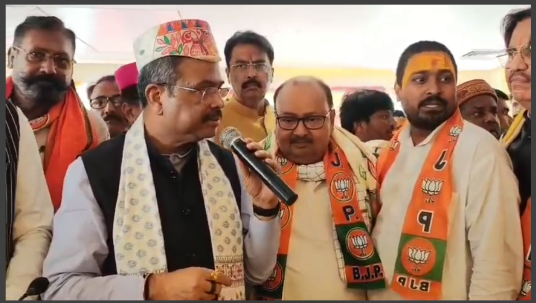 दरभंगा : विधानसभा चुनाव के लिए टिकट बंटवारे के बाद तोड़-फोड़ की राजनीति तेज हो गई है. शनिवार को भाजपा के बिहार प्रभारी धर्मेंद्र प्रधान दरभंगा पहुंचे और एक बैठक के बाद महागठबंधन से बागी वीआईपी पार्टी के राष्ट्रीय उपाध्यक्ष बद्री पूर्वे समेत 50 लोगों को भाजपा में शामिल कराया.