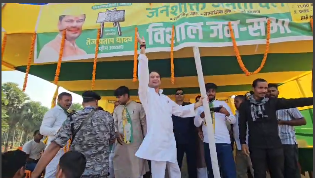 लेकिन इसी बीच उनकी नजर भीड़ में एक शख्स पर पड़ी, जिसके कंधे पर हरा रंग का गमछा था. तेजप्रताप का मूड तुरंत बदल गया. उन्होंने माइक पकड़ते हुए कहा—“अभी एगो हरा पार्टी वाला आ गया! जयचंदवा के पार्टी का! पाँच गो जयचंदवा मिलकर हमरा घर से बाहर कर दिए. ई गमछा हटाओ.