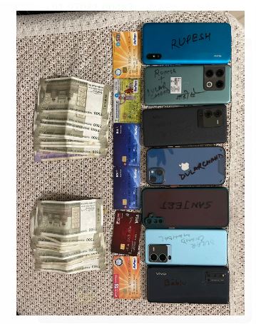 छापेमारी में अपराधियों के पास से 1 सियाज कार,14600 रुपये नगद, सात मोबाइल फ़ोन्स एवं 6 एटीएम कार्ड बरामद किया गया है. जब्त किए गए मोबाइल की जांच करने पर लगभग 32 लाख के ट्रांजेक्शन का प्रमाण मिला है. इनके मोबाइल में लगभग 4 लाख मोबाइल नंबर Doc फ़ाइल में सेव पाया गया जिसमें से लगभग 1 लाख आई टी कम्पनियों के कर्मचारी, 20 हजार बैंक कर्मियों एवं लगभग 10 हजार साउथ के बड़े उद्योगपतियो के नंबर ईमेल आईडी पता फार्म का नाम इत्यादि उपलब्ध पाया गया है. इसके अतिरिक्त 300-300 के ब्लग में लगभग 6 हजार लोगों को एसबीआई एकाउंट बंद होने के मैसेज के साथ फर्जी लिंक भेजने का प्रमाण मिला है. पुलिस के लिए यह बड़ी सफलता है.
