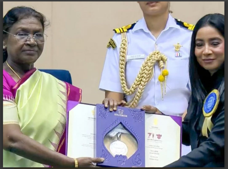 सुप्रसिद्ध गायिका शिल्पा राव को 71 वें राष्ट्रीय फिल्म पुरस्कार में फिल्म ‘जवान’ के प्रसिद्ध गीत ‘चलेया’ के लिए सर्वश्रेष्ठ महिला पार्श्वगायिका के पुरस्कार से सम्मानित किया गया है. नई दिल्ली के विज्ञान भवन में आयोजित समारोह में राष्ट्रपति द्रौपदी मुर्मू ने उन्हें यह पुरस्कार प्रदान किया है. सम्मान मिलने के बाद शिल्पा राव ने कहा "यह मेरे लिए गर्व का क्षण है. मेरी मेहनत को राष्ट्रीय स्तर पर पहचान मिली है. यह अनुभव मेरे लिए बेहद यादगार है.