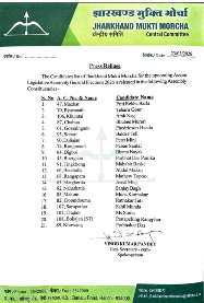 BREAKING NEWS : असम चुनाव में 'तीर-धनुष' के साथ JMM उतरेगी मैदान में, 21 सीटों पर अकेले चुनाव लड़ने का किया ऐलान